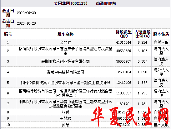 三季报显示,睿远基金与华夏基金旗下公募产品出现在梦网集团的前十大流通股东中。