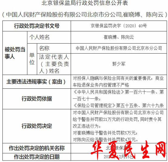 经中国经济网记者查询,京银保监复〔2019〕1047号显示,2019年12月17日,北京银保监局下发崔晓博任职资格批复,核准崔晓博中国人民财产保险股份有限公司支公司副经理(主持工作)的任职资格。