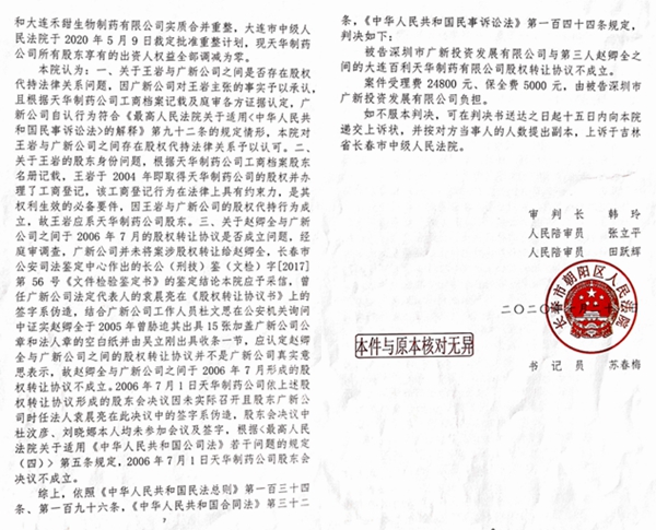 2018年12月28日,长春市朝阳区人民法院(2018)吉0104民初4041号判决书认定:赵卿全与广新公司的《股权转让协议》不成立。