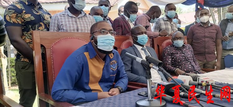 △肯尼亚医生、药剂师和牙医工会代理秘书长齐邦资·穆瓦充达医生在12月21日的新闻发布会上。