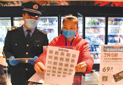 在销售终端,市民购买进口冷链产品前,可以扫描相应的产品二维码进行查验。记者近日走访北京多家超市,发现销售进口冷链产品的冷柜旁,都出示了“北京冷链”的二维码。