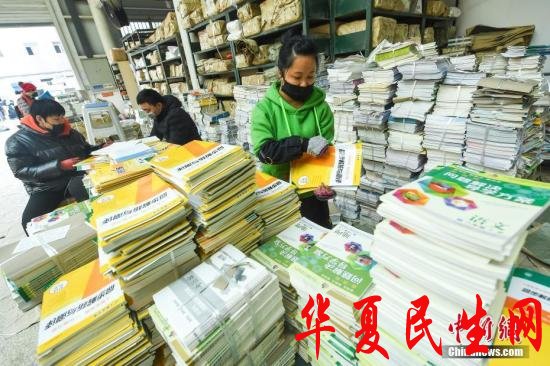 资料图:中小学生发放新学期的教材和教辅材料。 中新社记者 武俊杰 摄