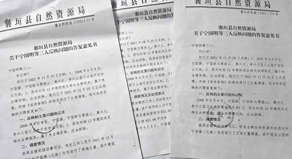 2021年1月10日,2021年12月13日,以及2022年3月25日,襄垣县自然资源局先后给宁国明等三人出具了三份答复意见书。