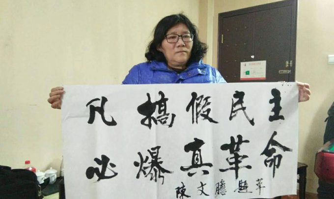 资料图片:2019年,徐秦在武汉声援秦永敏案开庭。(陈思明独家提供)