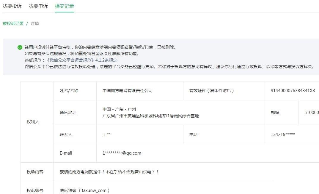 想一想,南方电网作为副部级的央企,在南方有着独特的垄断地位,谁敢不服?!断你的电,你还不老实?!微信公众号属于腾讯的,腾讯不听话?断你一小时的电,你就难受要命,更别说像观音山公园那样的小民企,实行错峰供电,你能正常营业吗?一篇文章,删就删了呗!