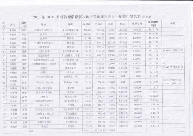 同时,村民还举报反映溪美朱村支部副书记兼任林兜经联社负责人朱镇武,在任职期间曾大肆侵占集体土地,通过以租代售的方式,牟取私利。其中有村民朱乔成,于2001年元月起承租村高新路西大堤旁边角地,每年缴纳租金5000元,后朱镇武私自将土地出售给朱乔成建设了9层楼房,占地约5亩左右。于2017年建成。