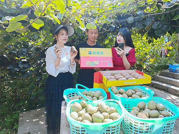 涪陵区党代表、区民协党委委员、区微企协会联合工会主席黄燕带领直播团队,穿梭在林间直播带货、指导拍摄场景、现场教采摘游客发布信息,领取猕猴桃礼品,助力拓宽猕猴桃的销售渠道。