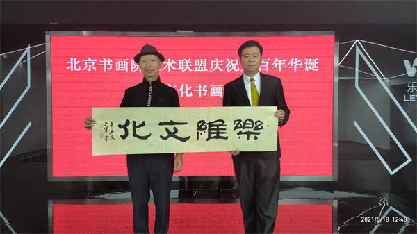 为庆祝中国共产党建党100周年,2021年5月18日上午,北京书画院艺术联盟和乐维(北京)文化经纪有限公司(以下简称“乐维文化”)联合举办了“北京书画院艺术联盟庆祝建党百年华诞乐维文化书画笔会”。