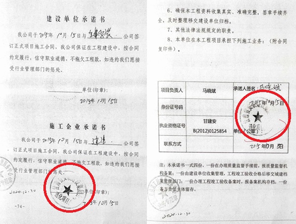 3、作为承包施工单位,不但违法转让了全部工程,对中标工程放任自流,还将公章(项目部公章),文件签署权等应由承包单位亲力亲为的事宜,全部交予建设单位行使,对承建的工程极不负责任,任由建设单位伪造工程竣工、验收、备案等材料,其行为涉嫌与建设单位相互勾结、串通,伪造公文,骗取国家的补贴和对工程质量的监管。按照《中华人民共和国建筑法》第二十六条的规定,“承包建筑工程的单位应当持有依法取得的资质证书,并在其资质等级许可的业务范围内承揽工程。禁止建筑施工企业超越本企业资质等级许可的业务范围或者以任何形式用其他建筑施工企业的名义承揽工程。禁止建筑施工企业以任何形式允许其他单位或者个人使用本企业的资质证书、营业执照,以本企业的名义承揽工程。”依据上述规定,甘肃安建的行为,严重扰乱了吉林省范围内乃至全国的建筑市场。
