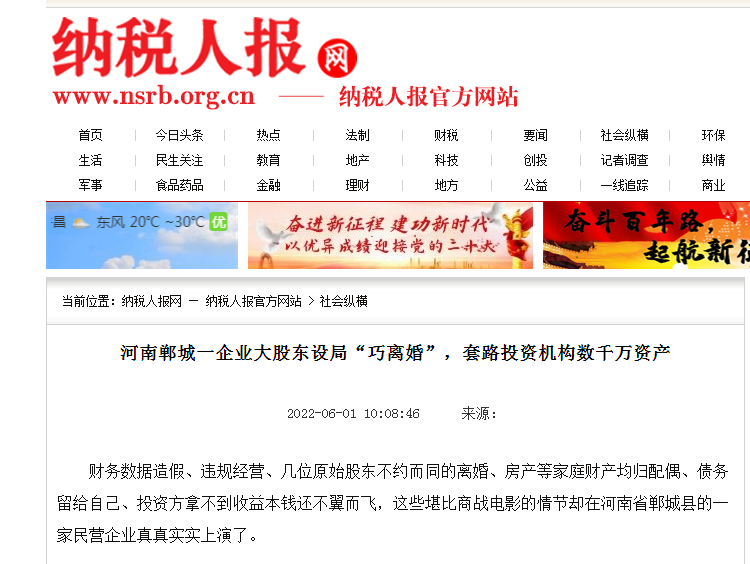 河南郸城一企业大股东设局“巧离婚”,套路投资机构数千万资产