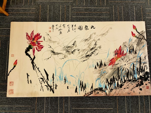 墨痴追求墨色至上,情感至上,意境至上,视觉至上,他用才情和修养,荡尽尘埃浊物,他充分利用造型本领,笔墨神韵,让每一笔都有出处,让每一笔都经得起推敲,让每一笔都能流传下去。他妙笔绘就的群虾,千姿百态,栩栩如生,灵动有趣,暗香涌动,呼之欲出,真正做到:一虾一神态,一虾一景观,一虾一妙韵。著名书法家米南阳先生曾作诗云:“白石画虾堪称雄,只惜不在人世中。天恐此技猷决断,再生墨痴我老兄。”他的画作在市场上很受欢迎,他都是客户至上,情意至高。