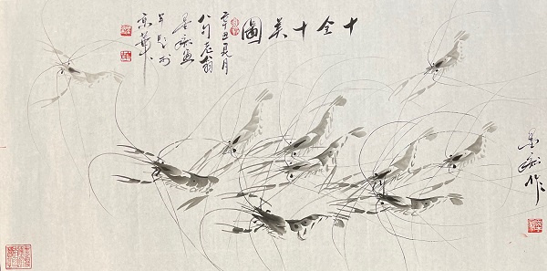 墨痴大师从幼年起,就酷爱国画艺术,早年广泛习青藤、八大、吴昌硕、齐白石、徐悲鸿等名家作品。后期特别对白石老人的作品有较深和系统的研究。尤以画虾见长,自成一派,独具风格,海内外画界赞誉: 现代中国画虾者,唯有墨痴与齐白石齐名,享有“当代虾王” 之美称。
