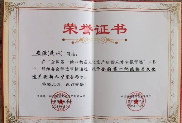 茂水的祖辈在当地,也算大户人家,十里八乡尽人皆知。崇尚文化,善交贤达,令人敬佩。适逢家中宾朋满座,长辈们把酒临风,谈古论今……说者无意听者有心,静候一旁的茂水,自然没有闲着。大人们的谈话,虽说不甚明了,可他明白个中的道理:要想日后有所作为,必须拥有广博的知识,从小打下坚实的基础,方能报答父母养育之恩,长大后报效祖国。 他的心胸日渐宽广起来,一个美好的梦想在心底放飞……少年壮志,豪情万丈。在文化底蕴深厚的胶南大地,千百年来,文人倍出。受家乡环境的影响与艺术的熏陶,让安茂水对木版年画、书法情有独衷。从此,他如鱼得水,如鸟投林,醉心艺术,开始漫长求艺之路。