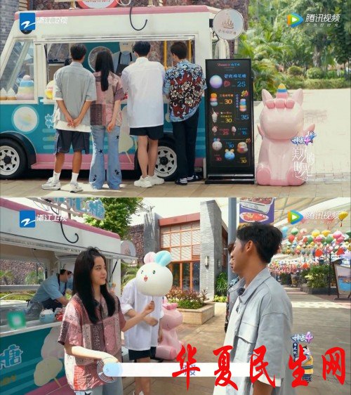 无独有偶,我们跟着另一个热门综艺《美好的时光》来到三亚,在海昌梦幻海洋不夜城的风情街上,一辆风格清新可爱的棉花糖餐车引发围观,让李荣浩、欧阳娜娜等音乐人走不动路,瞬间变身大孩子抢着吃棉花糖。