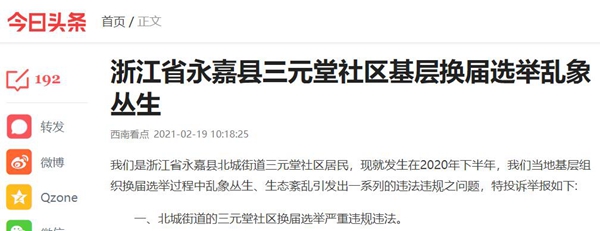 浙江省永嘉县三元堂社区基层换届选举违法违规乱象丛生!