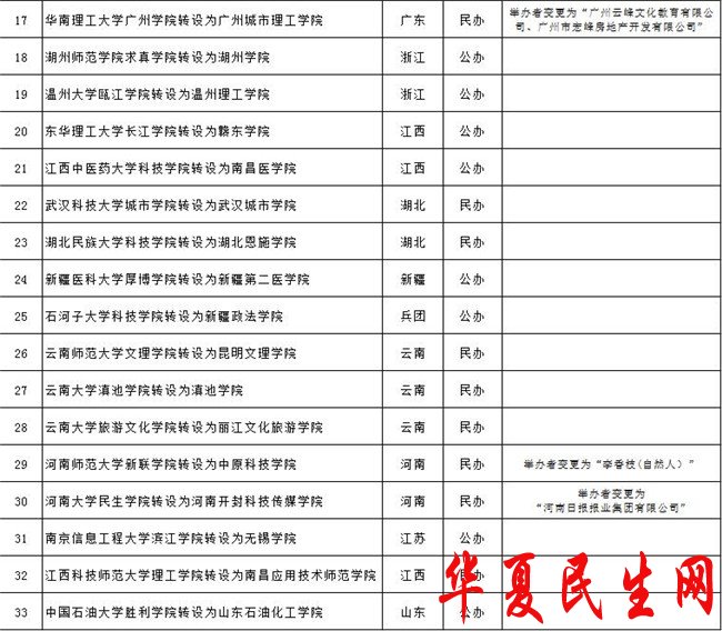 中国网12月24日讯 教育部今日发布《关于拟同意设置本科高等学校的公示》,公示称,根据《高等教育法》《普通高等学校设置暂行条例》《普通本科学校设置暂行规定》和《关于加快推进独立学院转设工作的实施方案》等法律法规政策规定,经第七届全国高等学校设置评议委员会专家考察和评议,并经党组会审议,拟同意中北大学信息商务学院等33所独立学院转设为独立设置的本科学校,现将学校名单等信息向社会公示。